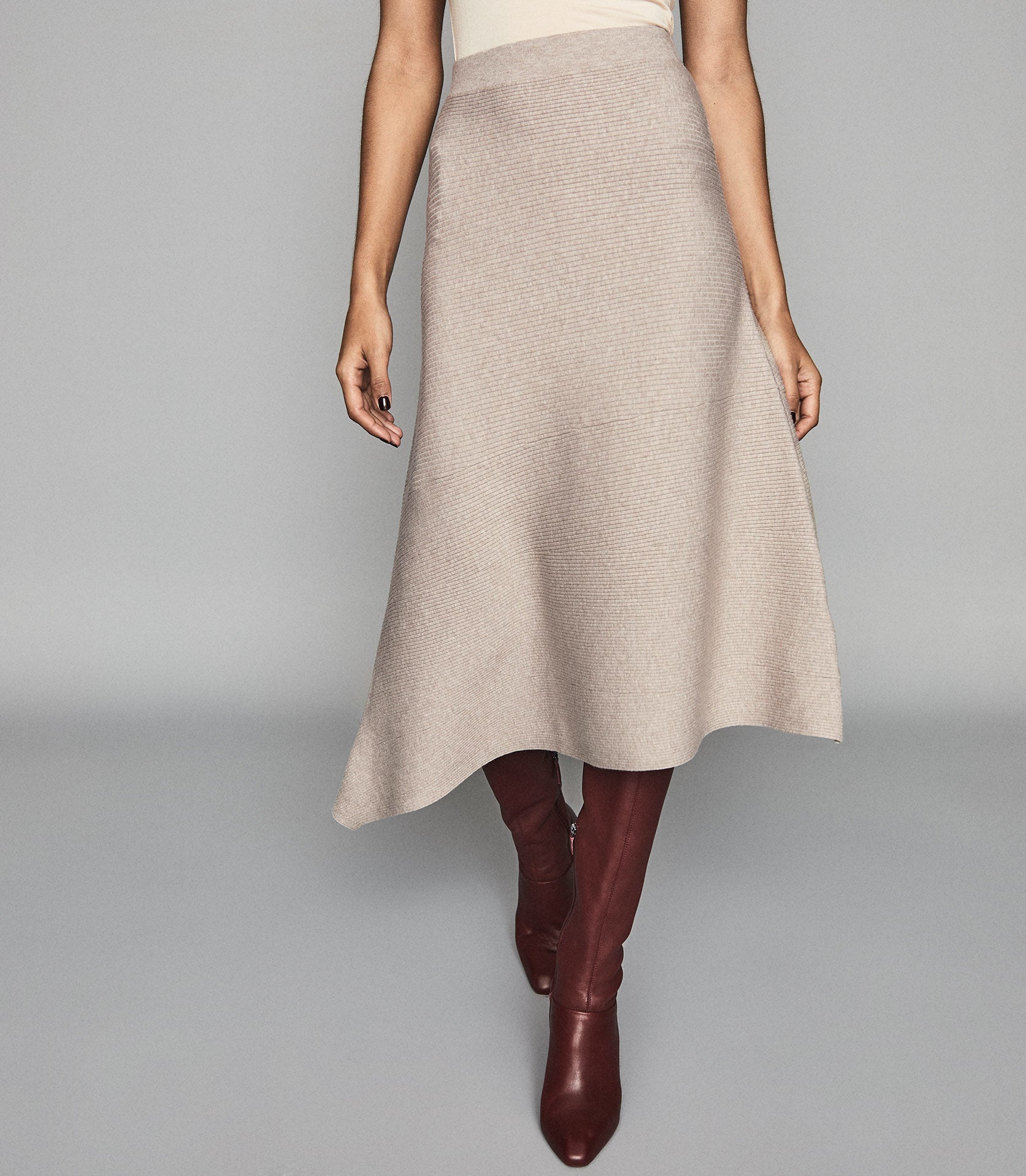 Style it with a pencil skirt and heels for a simple yet sophisticated workwear. This piece features cut-outs down the front. View Terms Conditions for further details. The Connie knitted pencil skirt in neutral is a contemporary take on a classic wardrobe staple. New lines added daily. Its engineered to a mid-length silhouette with a drawcord waistband and pocket detailing. The anna knitted skirt in brown plays its part in our iconic skirts collection and is available to buy online at REISS. New lines added daily. View Terms Conditions for further details.